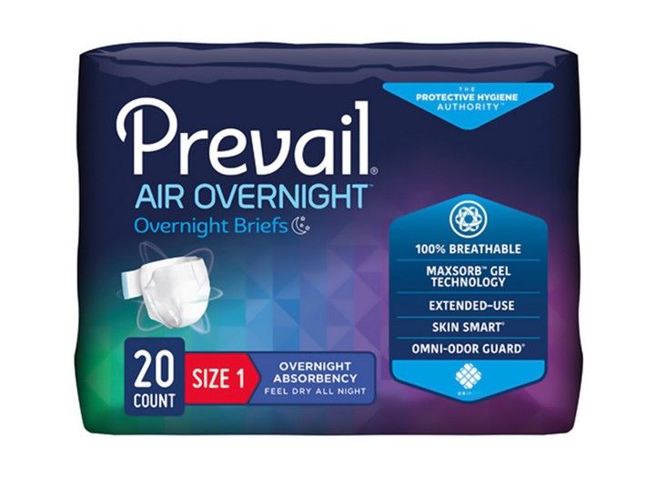 Prevail AIR Overnight Briefs are the latest addition to the Prevail AIR Brief lineup. Using the premium features from our Next Generation Briefs, we’ve added the new breathable AirMax Layer to our Overnight Absorbency briefs. The new Prevail AirMax Layer takes Microclimate Care to the next level by helping decrease skin’s contact with moisture. The specially formulated breathable material traps wetness inside but air, heat and humidity escape, allowing the skin to breathe. Available in 3 sizes. Case quantity